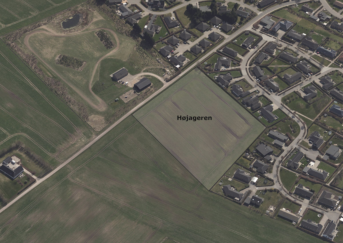 Luftfoto af arealudlægget Højageren, set fra nord mod syd.