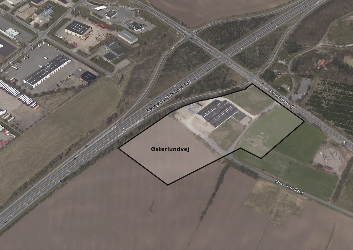 Billede af ny ramme til erhvervsformål ved motorvejen øst for Lund.