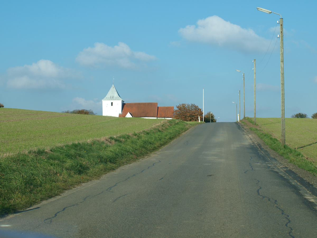 Et særligt kendetegn ved Gangsted er den markante kirke, der afrunder landsbyen mod vest.