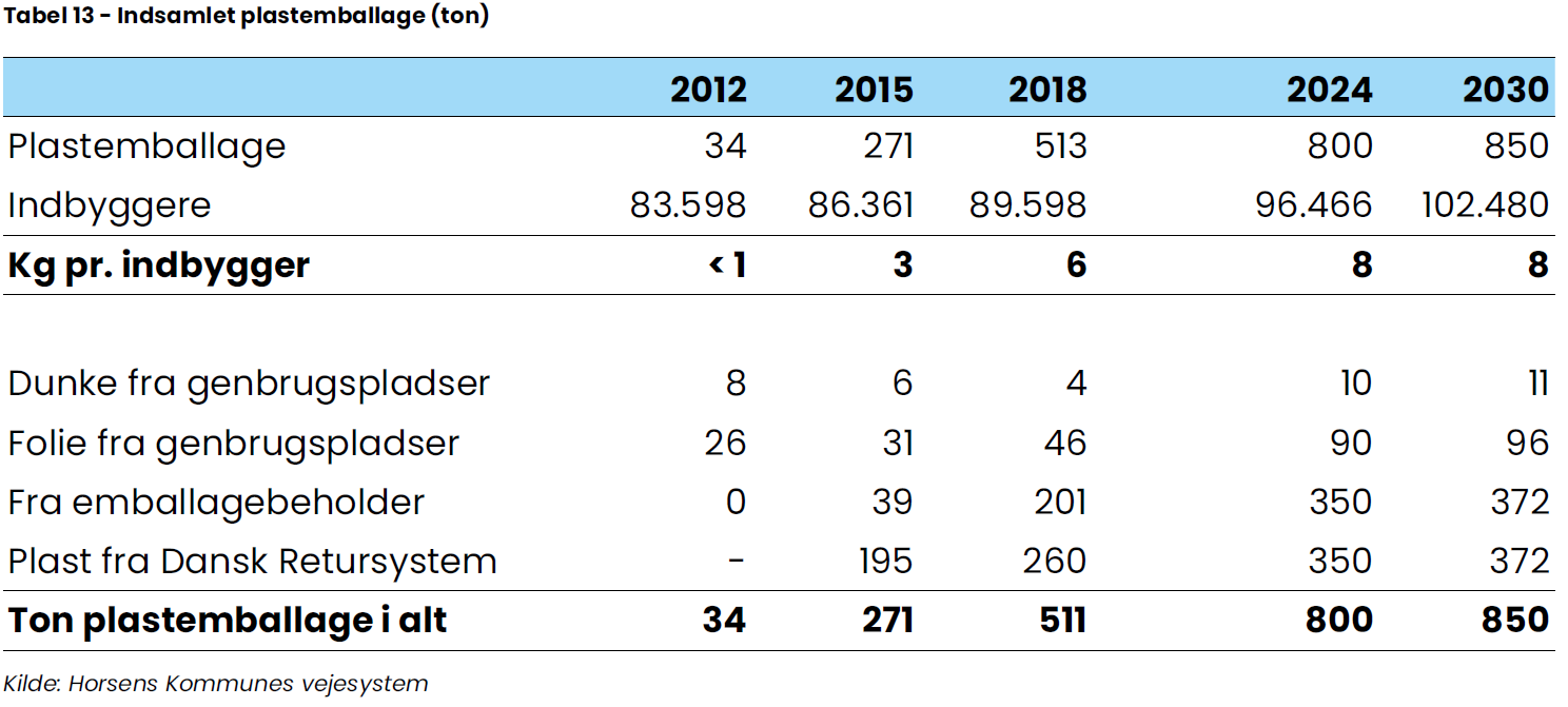 På tros af Regeringens initiativer i plastikhandlingsplan forventes en stigning i produktionen af plastemballage og dermed også en forventning om øget indsamling af plastemballage.
