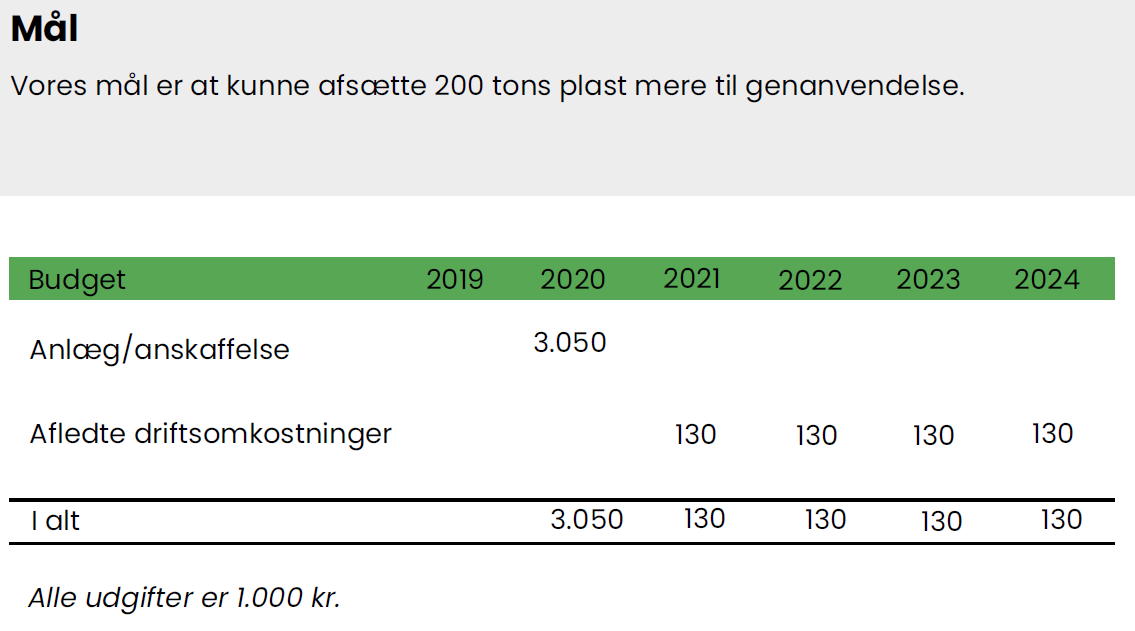 Faciliteterne til sortering og granuleringen af plasten vil vi lave i forbindelse med etablering af modtageranlæg til genbrugsbyggematerialer.