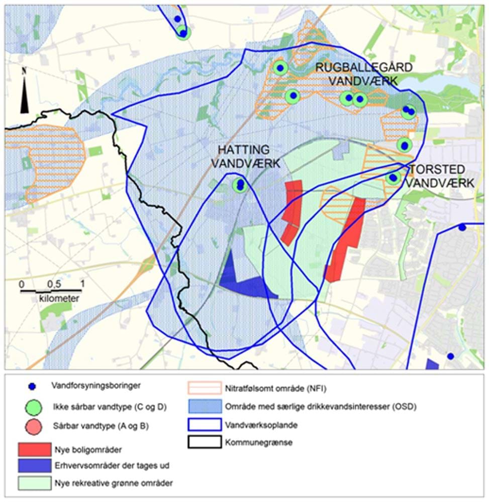 Grundvandsmagasinernes udbredelse og sårbarhed er kortlagt af Vejle Amt i 2000-2003. Efterfølgende har Vejle Amt i 2005 udarbejdet en indsatsplan for beskyttelse af områdets drikkevandsinteresser. Indsatsplanen er udarbejdet for Rugballegårdværket, Torsted og Hatting vandværker, samt 2 almene vandværker beliggende udenfor området, Oens og Bækkelund vandværker. Indsatsplanen har bl.a. fokus på skovrejsning, samt at sikre, at en evt. udbygning af byerne Hatting og Horsens sker efter grundvandsvenlige retningslinjer.