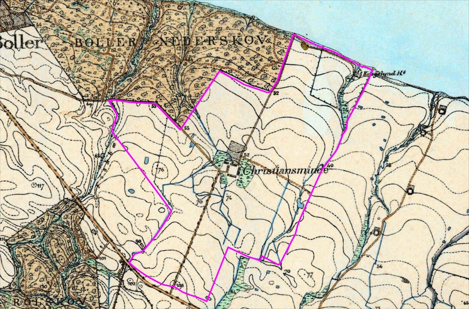 Christiansminde ligger centralt, omgivet af gode agerjorder, der strækker sig fra landevejen i syd til Horsens Fjord i nord. Mod øst markerer levende hegn og grøfter den gamle ejerlavsgrænse mellem Boller og Sejet. Mod vest afgrænses jorderne af diger i det åbne land og mod Boller Nederskov.