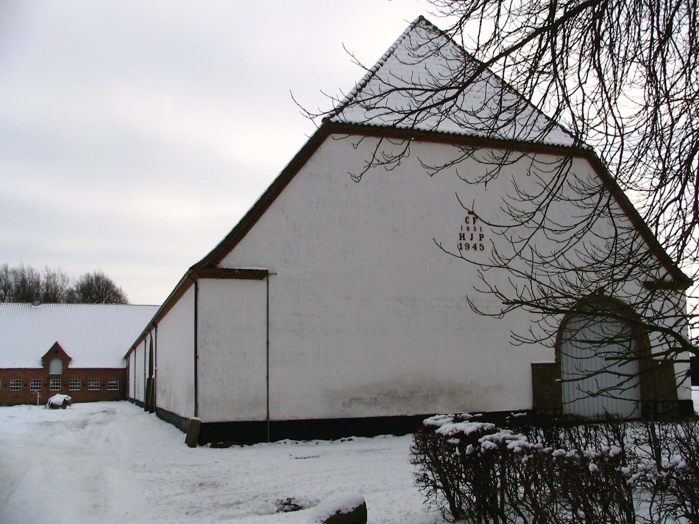 Det firlængede gårdanlæg med tilbygninger entreres fra landevejen via en lang allé, hvor beplantningen er fornyet. Hovedbygningen er opført 1853 i hvidkalket grundmur. Avlslængerne er fra 1851, statelige rødstens bygninger med trekantfrontoner, stik og pudsede bånd, renoveret 1945. En hvidkalket fodermesterbolig med halvvalmet tag ligger for enden af alléen.