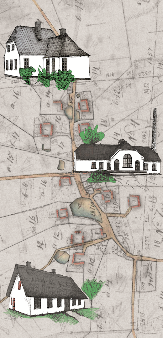 Efter landboreformen startede industrialiseringen, som betød at nye funktioner også kom til landsbyerne. I den forbindelse skete der en ændring i byggeskikken, hvor der kom brugsforeninger til med f.eks. større vinduesflader til udstilling af varer. Der kom store mejerier, stationsbygninger og skoler til.