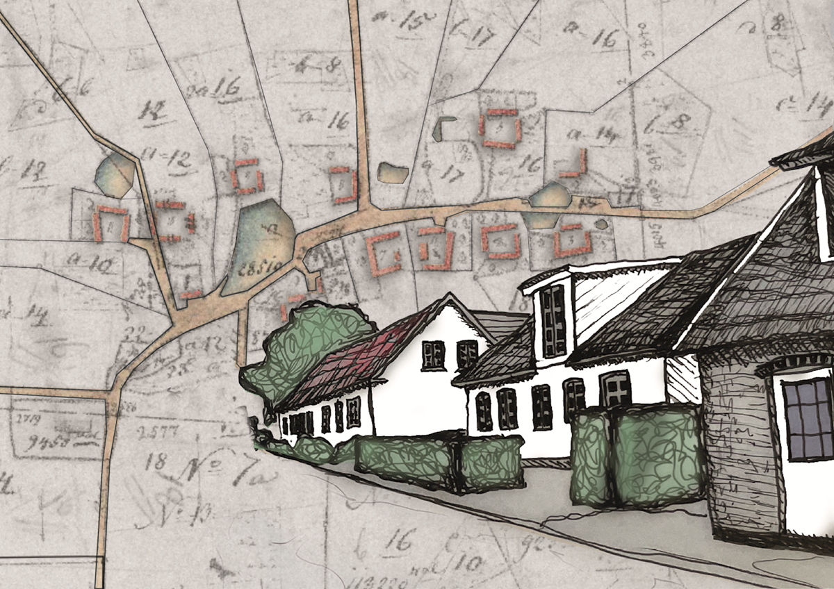 Landsbyerne er oftest bebyggede med små åben-lav boliger mellem store gårde, og husene er typisk placeret i én række på hver side af gaden. Husene er som hovedregel placeret på grundene, så de ligger parallelt med og tæt på landsbyens hovedgade. Indgangsfacaden er således orienteret mod livet i landsbyengaden til den ene side, og havefacaden mod det åbne landskab med marker, skov og natur til den anden side.