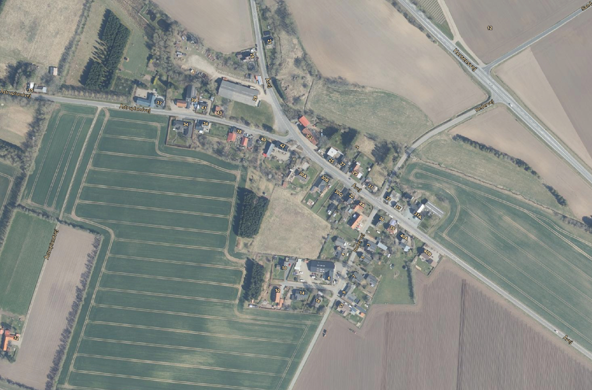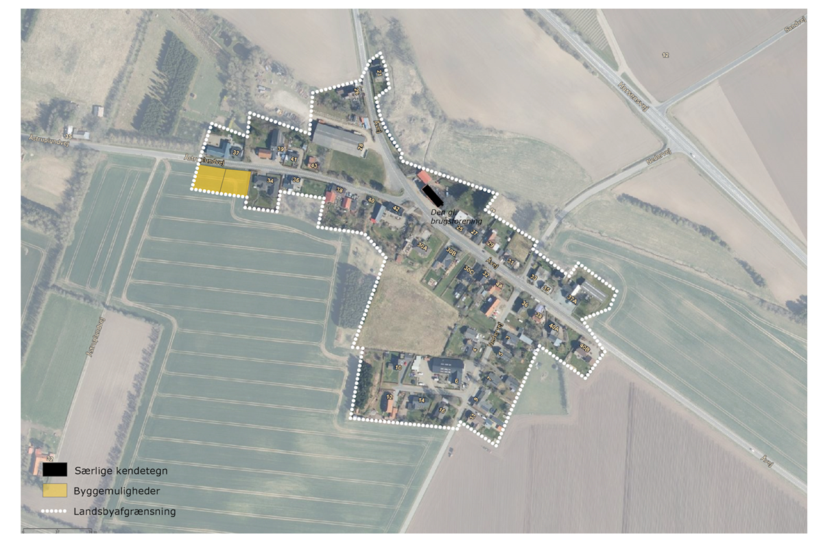 - Den nordvestlige del af landsbyen er beliggende i et område med særlige drikkevandsinteresser (OSD).
