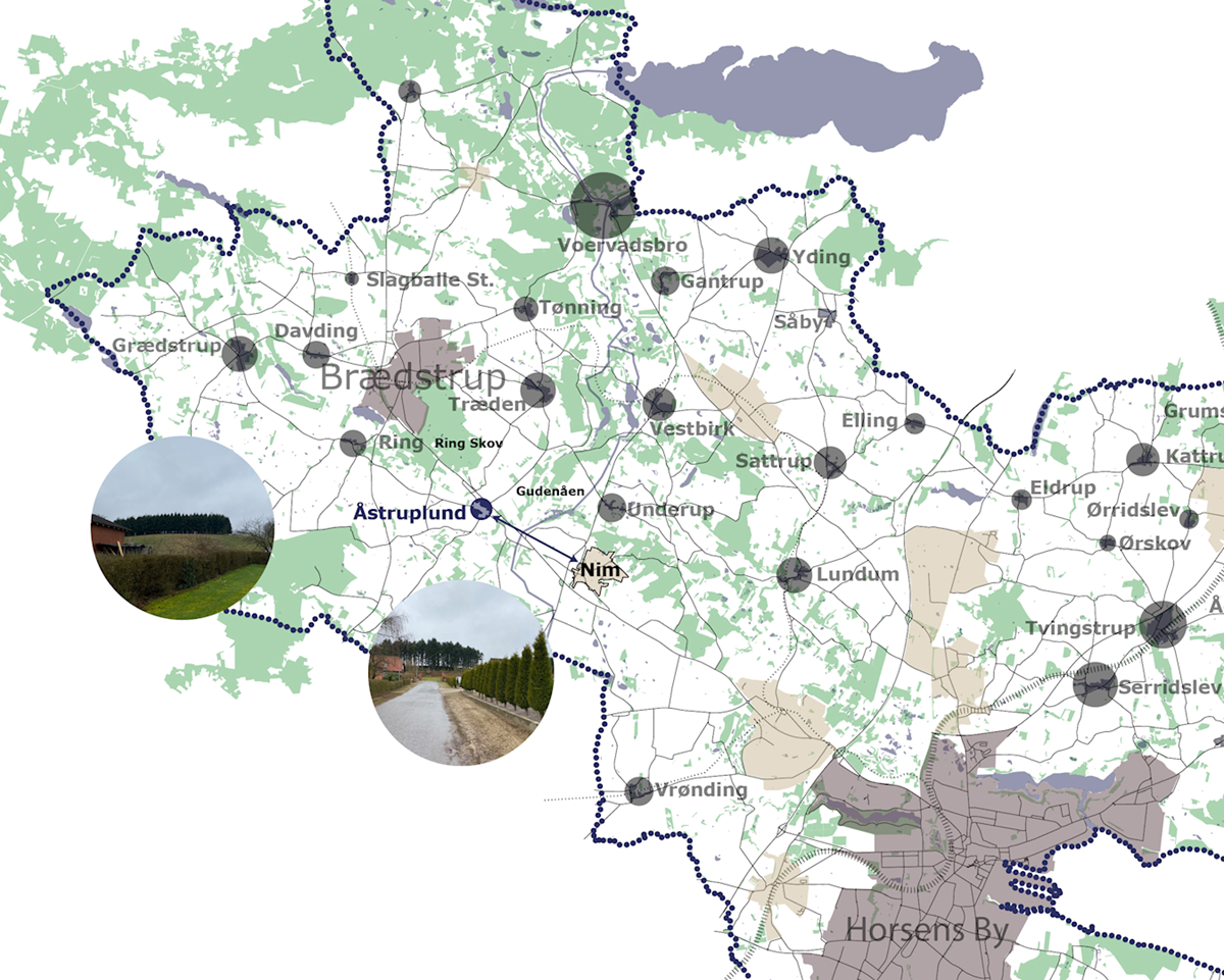For at understøtte målsætningen udvides landsbyafgrænsningen. Det er Horsens kommunes vurdering, at landsbyafgrænsningen i det konkrete tilfælde kan udvides samtidig med, at den overordnede struktur i landsbyen bevares.