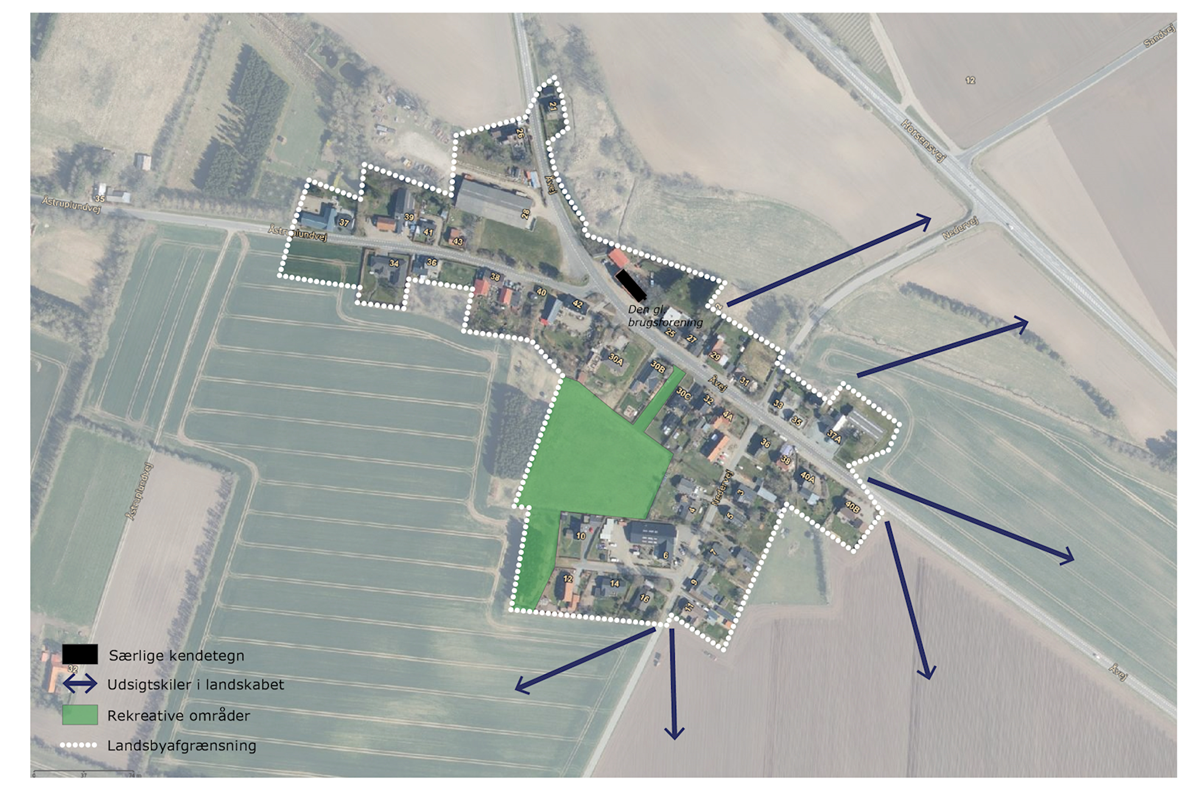 Der findes ikke tilstrækkeligt med byggemuligheder indenfor landsbyafgrænsningen fra 2012, hvorfor landsbyen udvides i beskedent omfang. - Udsigtskiler