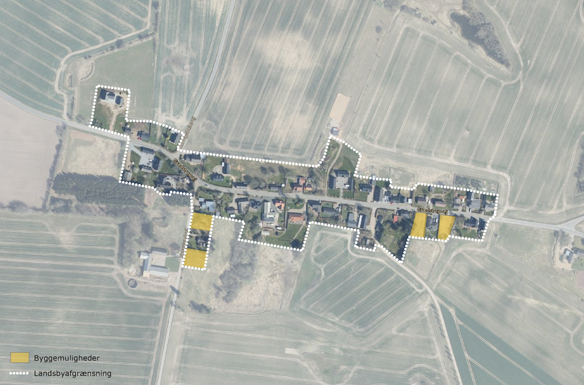 Udpegningerne er foretaget udelukkende for at give borgerne i landsbyen og evt. fremtidige bygherre et overblik over potentielle fremtidsmuligheder. Det er altså ikke udtryk for, at kommunen kommer til at stå for evt. udvikling, byggerier eller indretning af fællesarealer. Udviklingen skal drives af private investorer, lokalråd, borgere eller fonde. Læs mere her, om hvad der kan søges støtte til i kommunen.