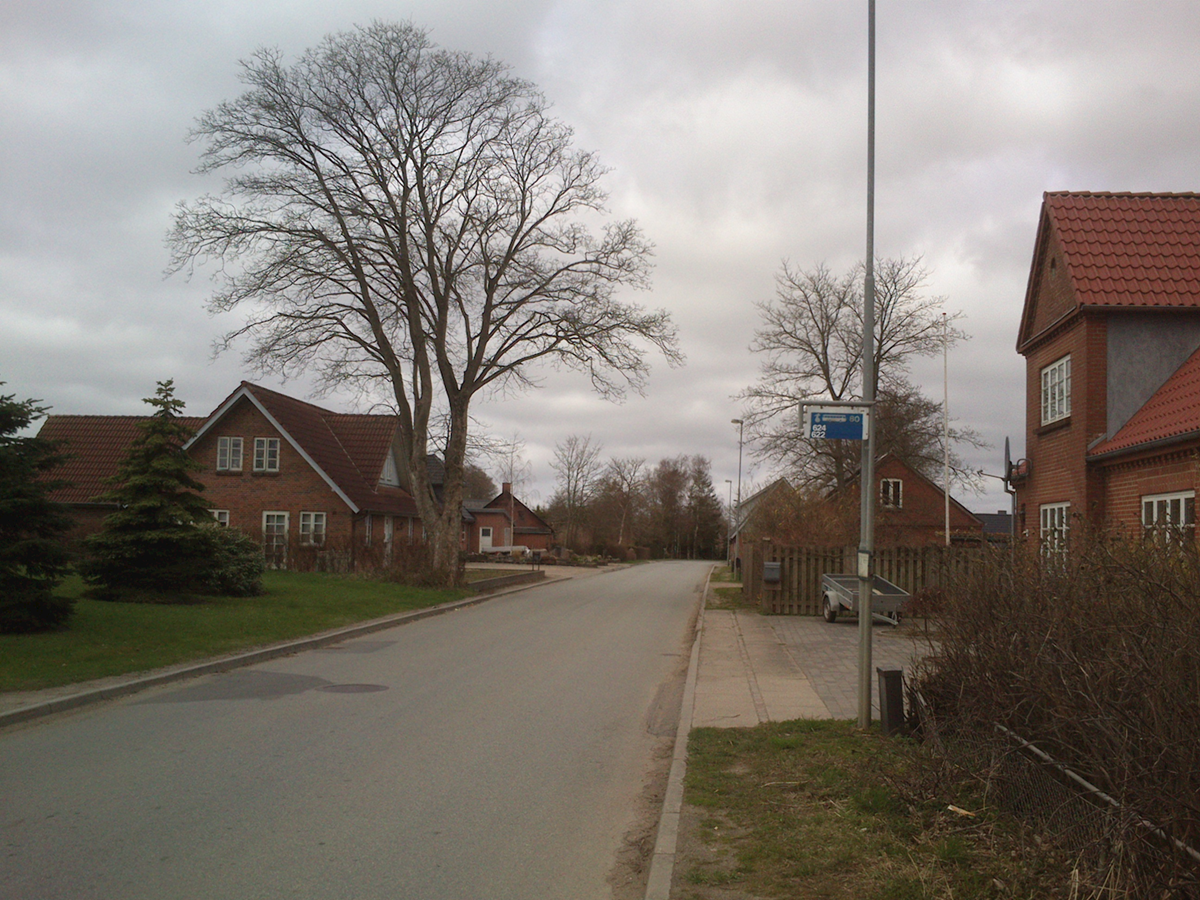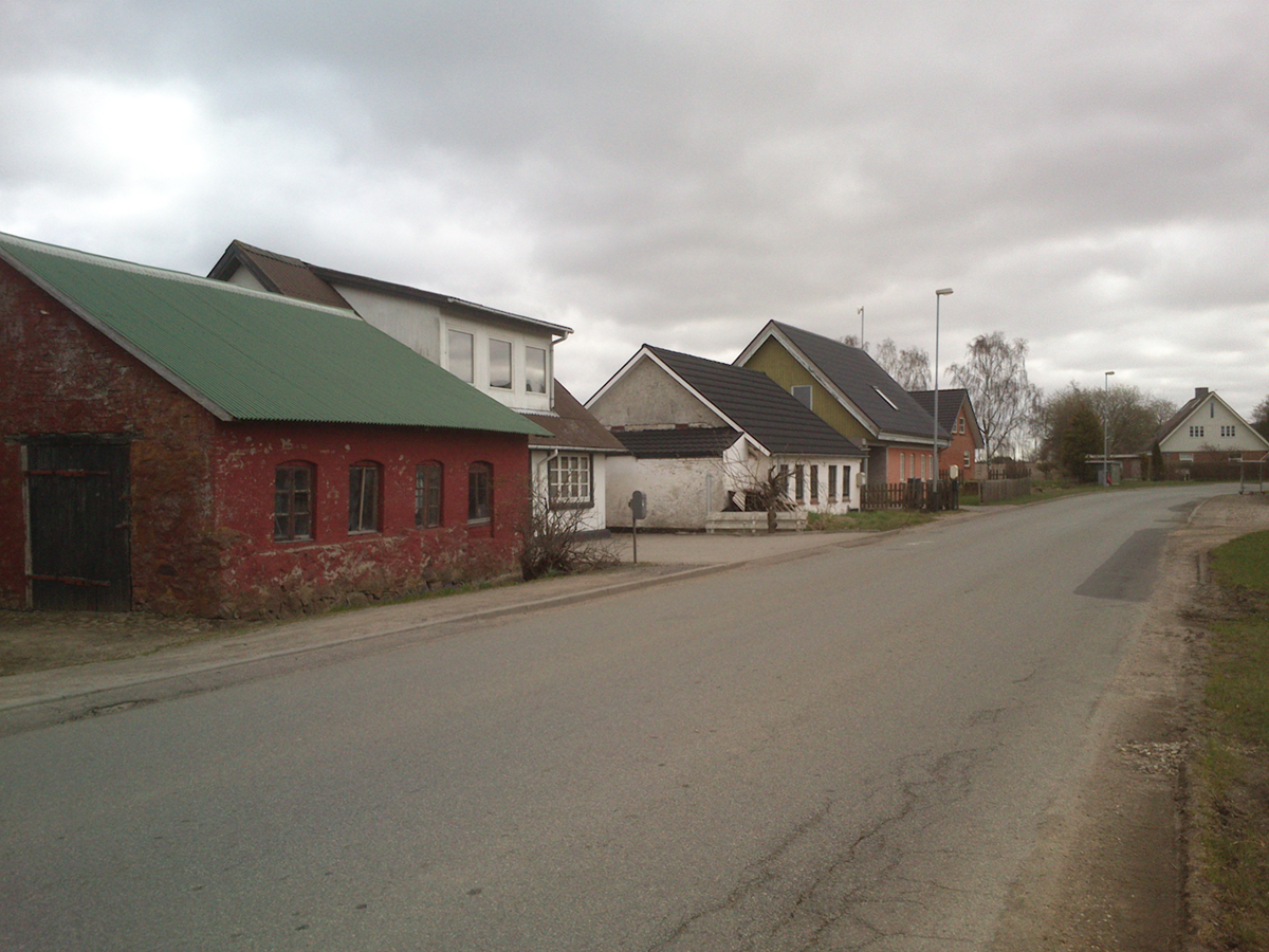 - Flere steder i landsbyen er der udpeget risikoområder for oversvømmelse.