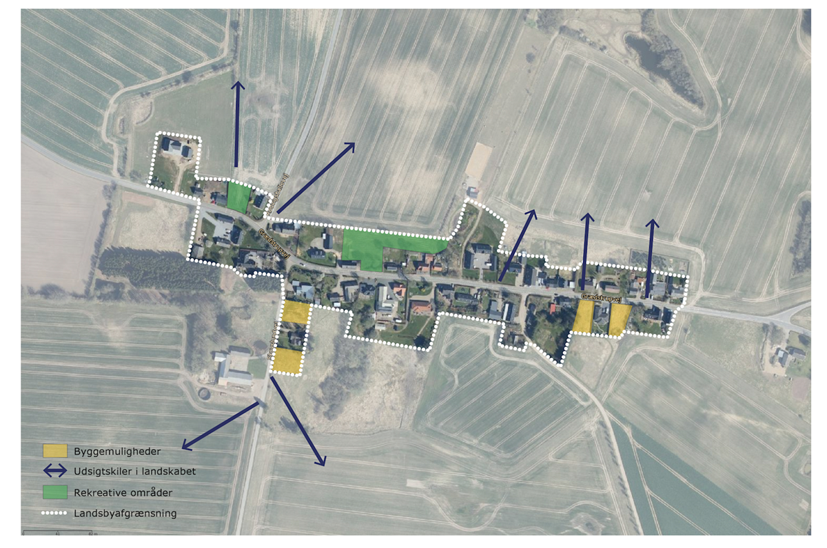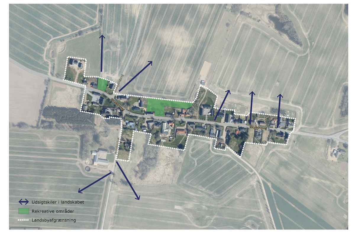 Der findes ikke tilstrækkeligt med byggemuligheder inden for landsbyafgrænsningen fra 2012, hvorfor landsbyen udvides i beskedent omfang. - Udsigtskiler