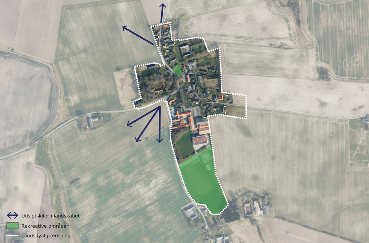Da der er tilstrækkelige udviklingsmuligheder indenfor den gældende afgrænsning, sker der ikke udvidelse af landsbyafgrænsningen til byggemuligheder. - Udsigtskiler