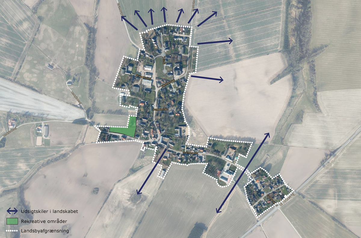 Der udpeges udsigtskiler i nord- og sydgående retning i landsbyen, der skal bidrage til at bevare den særlige forbindelse til den omkringliggende natur. - Rekreative områder