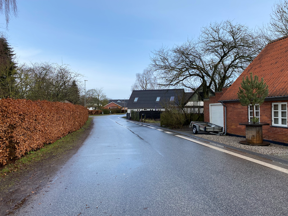 Billedet viser en landsbygade i Grumstrup.
