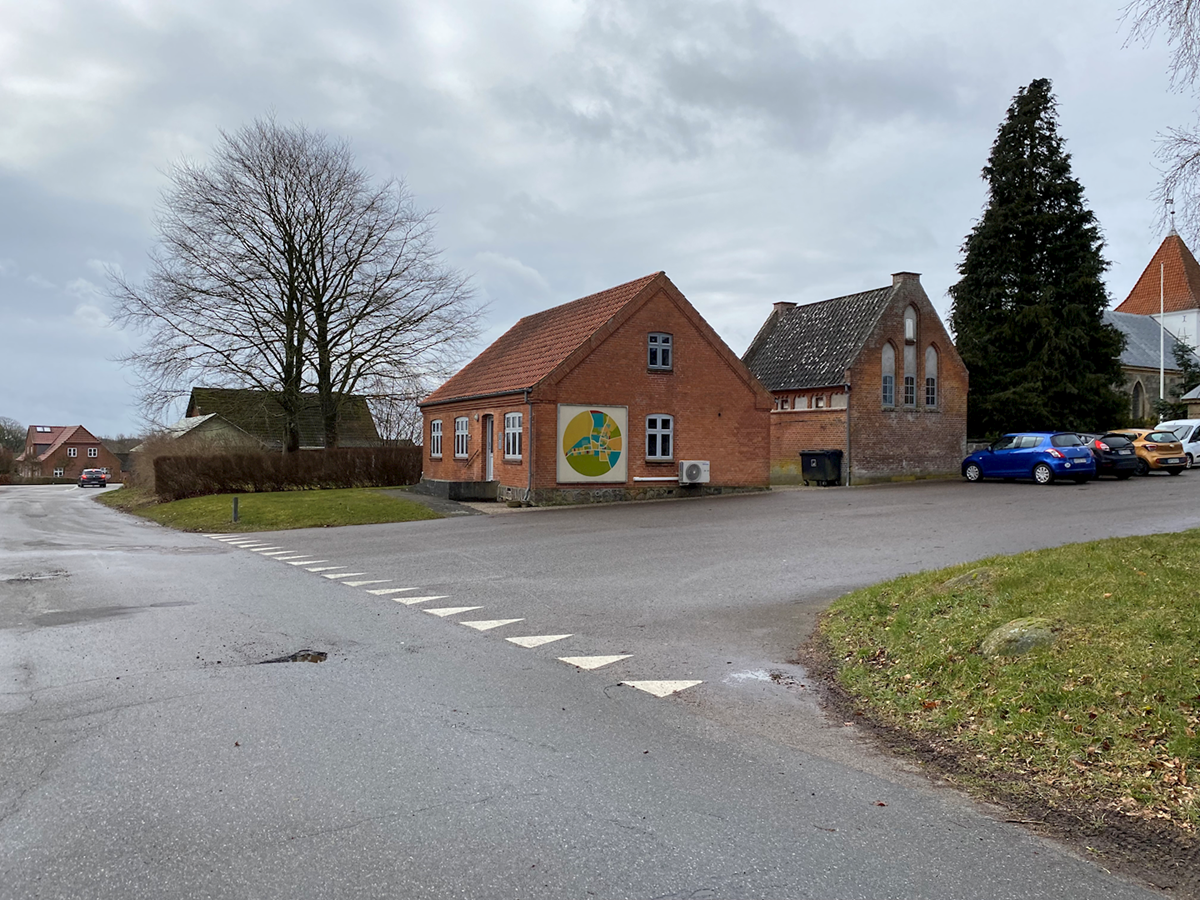 Billedet viser en landsbygade i Kattrup ved kirken.