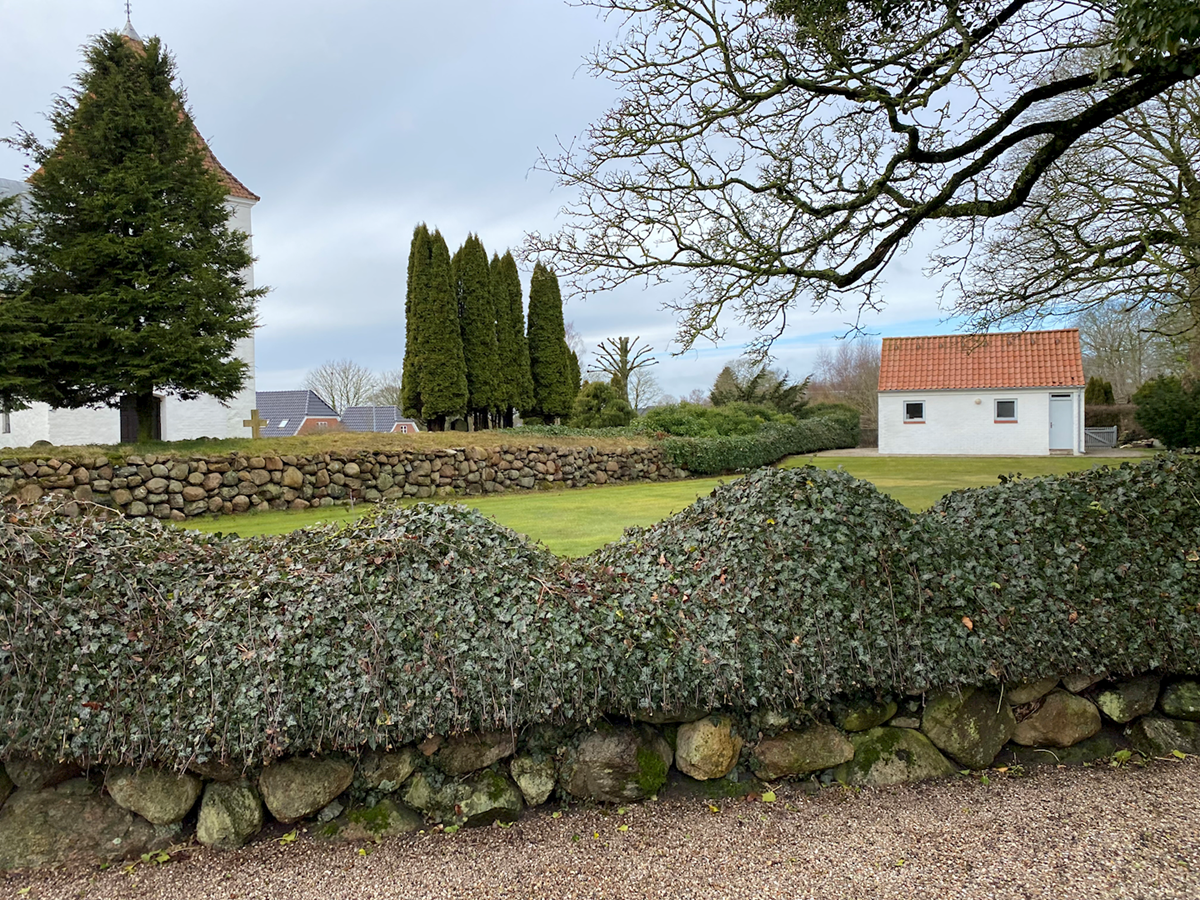 - Kirken og kirkegården.