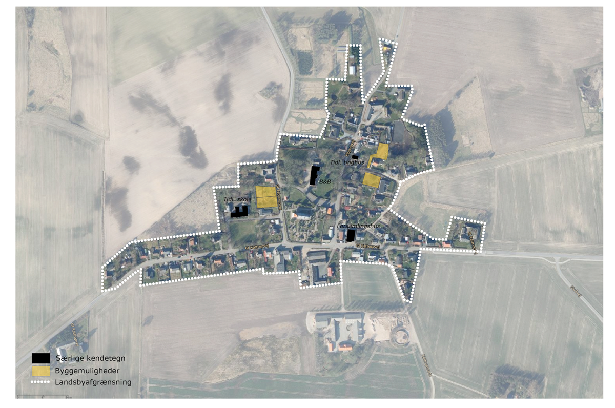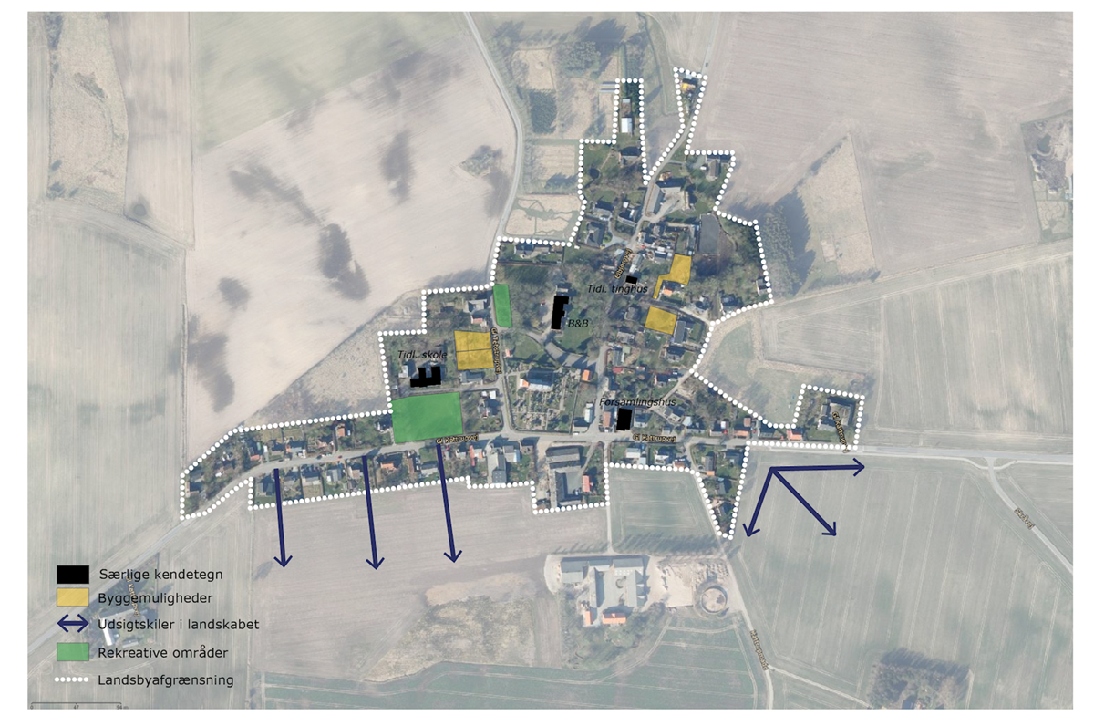 Udpegningerne er foretaget udelukkende for at give borgerne i landsbyen og evt. fremtidige bygherre, et overblik over potentielle fremtidsmuligheder. Det er altså ikke udtryk for, at kommunen kommer til at stå for evt. udvikling, byggerier eller indretning af fællesarealer. Udviklingen skal drives af private investorer, lokalråd, borgere eller fonde. Læs mere her, om hvad der kan søges støtte til i kommunen.