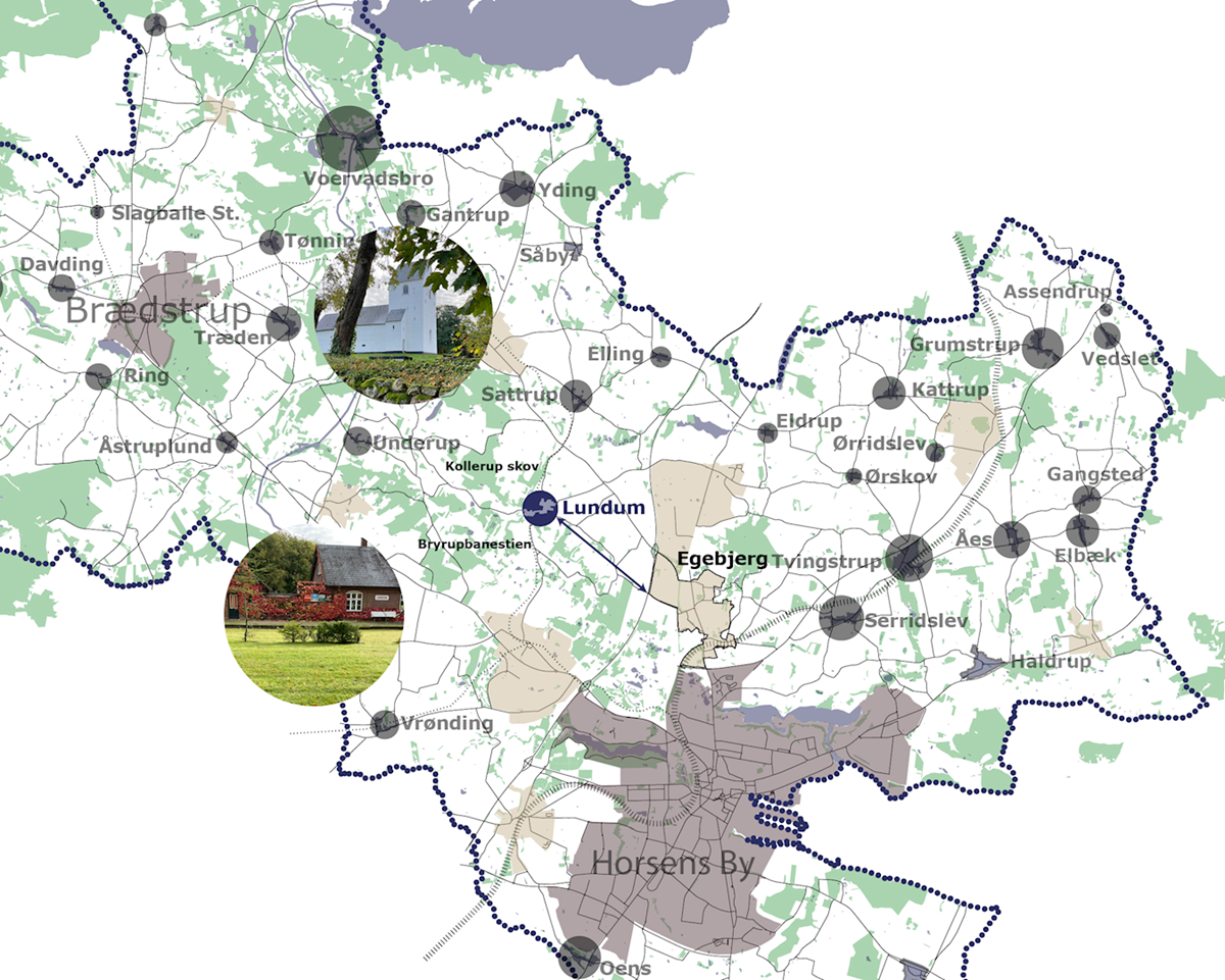 Landsbyerne som skal tilpasses, er karakteriseret ved at udviklingspotentialet er udfordret, og at der på baggrund af udviklingen i sidste planperiode, ikke umiddelbart vurderes at ske en stigning i indbyggertallet, som kan retfærdiggøre at landsbyen udvides yderligere. I Lundum er udbuddet af byggemuligheder fortsat så stort, at det kan dække den forventede efterspørgsel i planperioden (2021-2033).