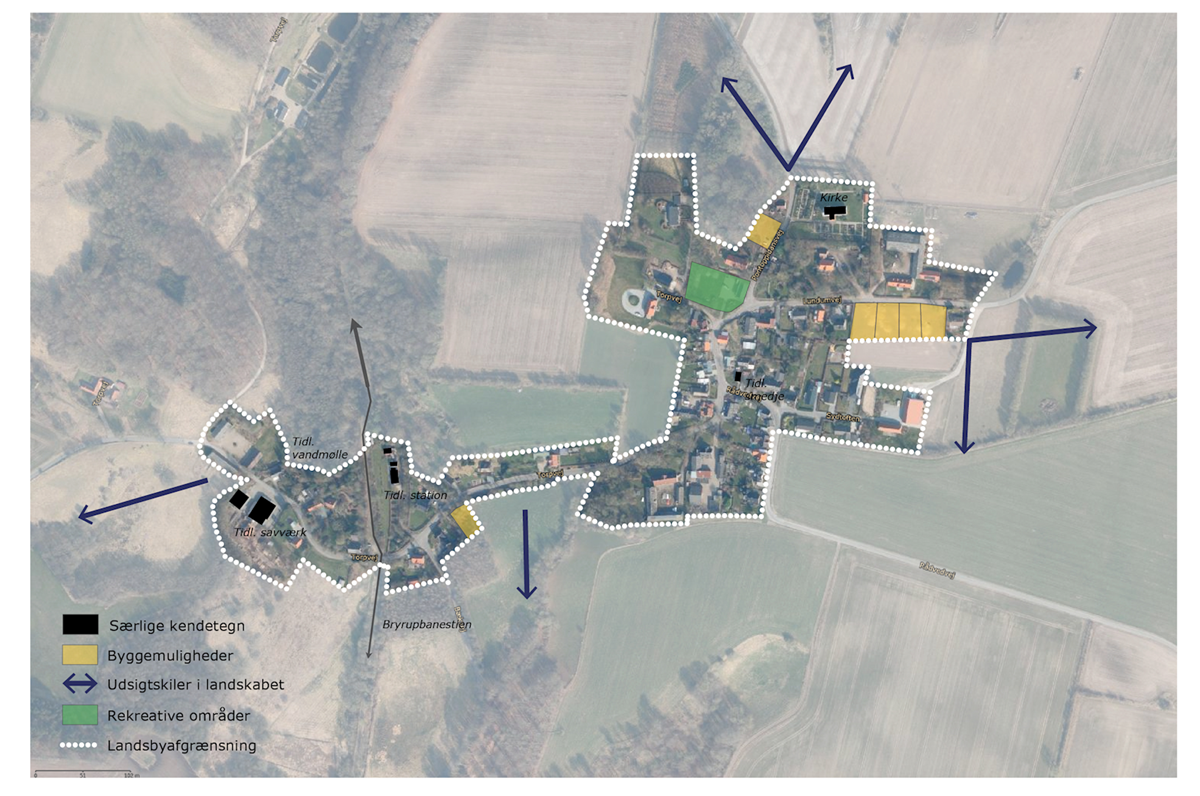 Udpegningerne er foretaget udelukkende for at give borgerne i landsbyen og evt. fremtidige bygherre, et overblik over potentielle fremtidsmuligheder. Det er altså ikke udtryk for, at kommunen kommer til at stå for evt. udvikling, byggerier eller indretning af fællesarealer. Udviklingen skal drives af private investorer, lokalråd, borgere eller fonde. Læs mere her, om hvad der kan søges støtte til i kommunen.