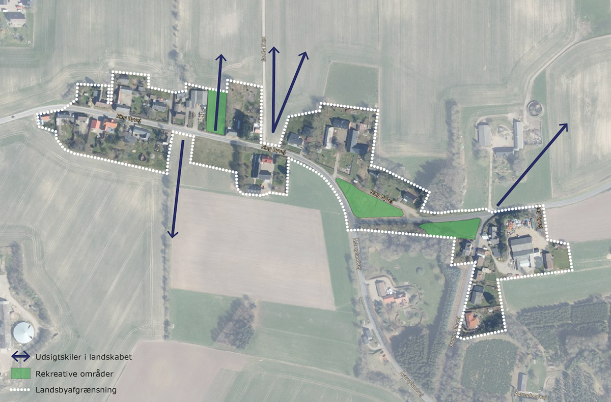 Der er udpeget tre rekreative områder, der i fremtiden kan understøtte lokalsamfundet ved indretning til fælles formål. - Byggemuligheder