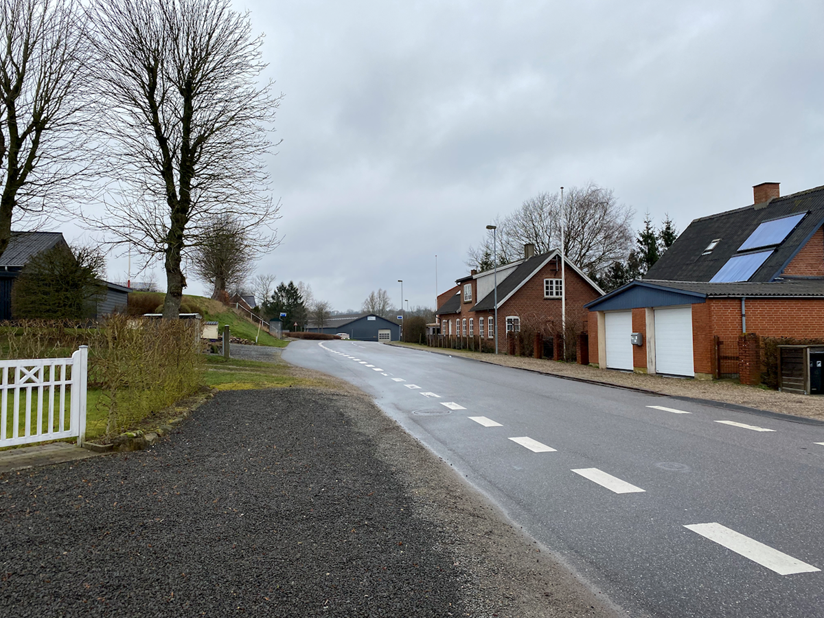 Billedet viser en landsbygade i Ring.