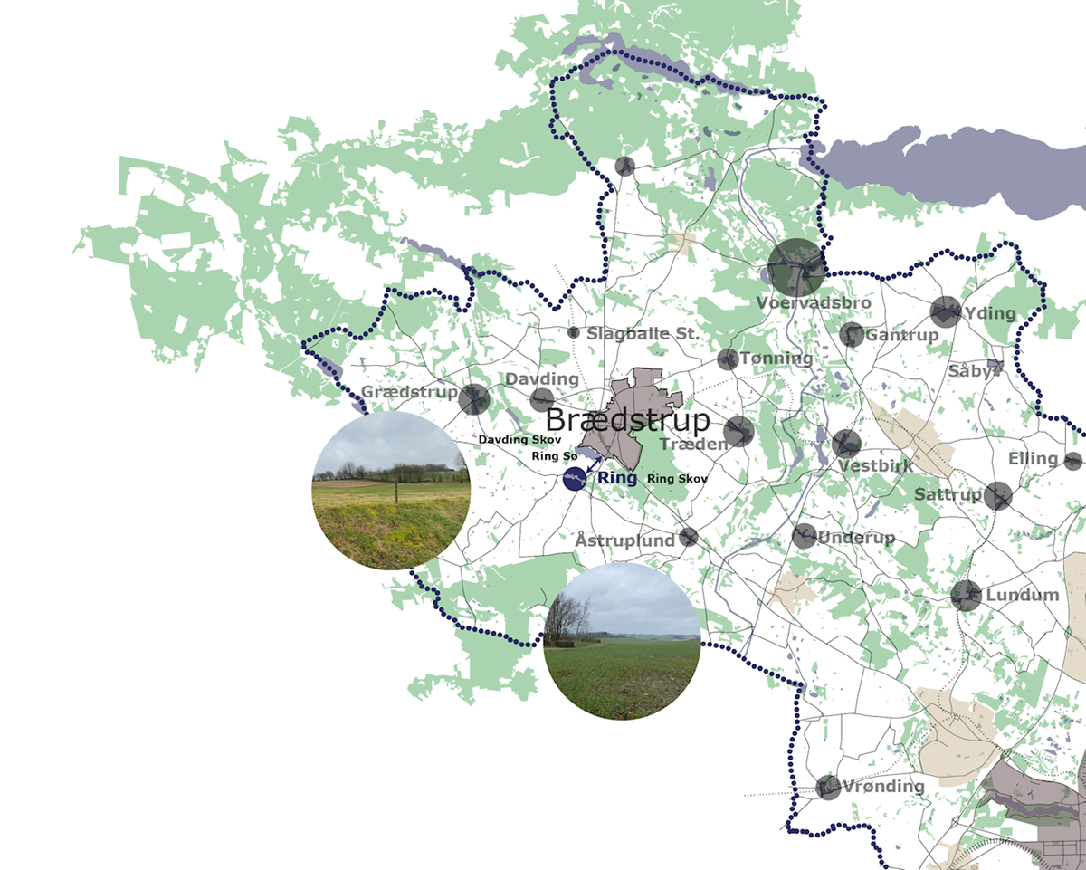 Landsbyer som skal tilpasses, er karakteriseret ved at udviklingspotentialet er udfordret, og at der på baggrund af udviklingen i sidste planperiode ikke umiddelbart vurderes, at ske en stigning i indbyggertallet, som kan retfærdiggøre, at landsbyen udvides yderligere. I Ring er udbuddet af byggemuligheder fortsat så stort, at det kan dække den forventede efterspørgsel i planperioden (2021-2033).