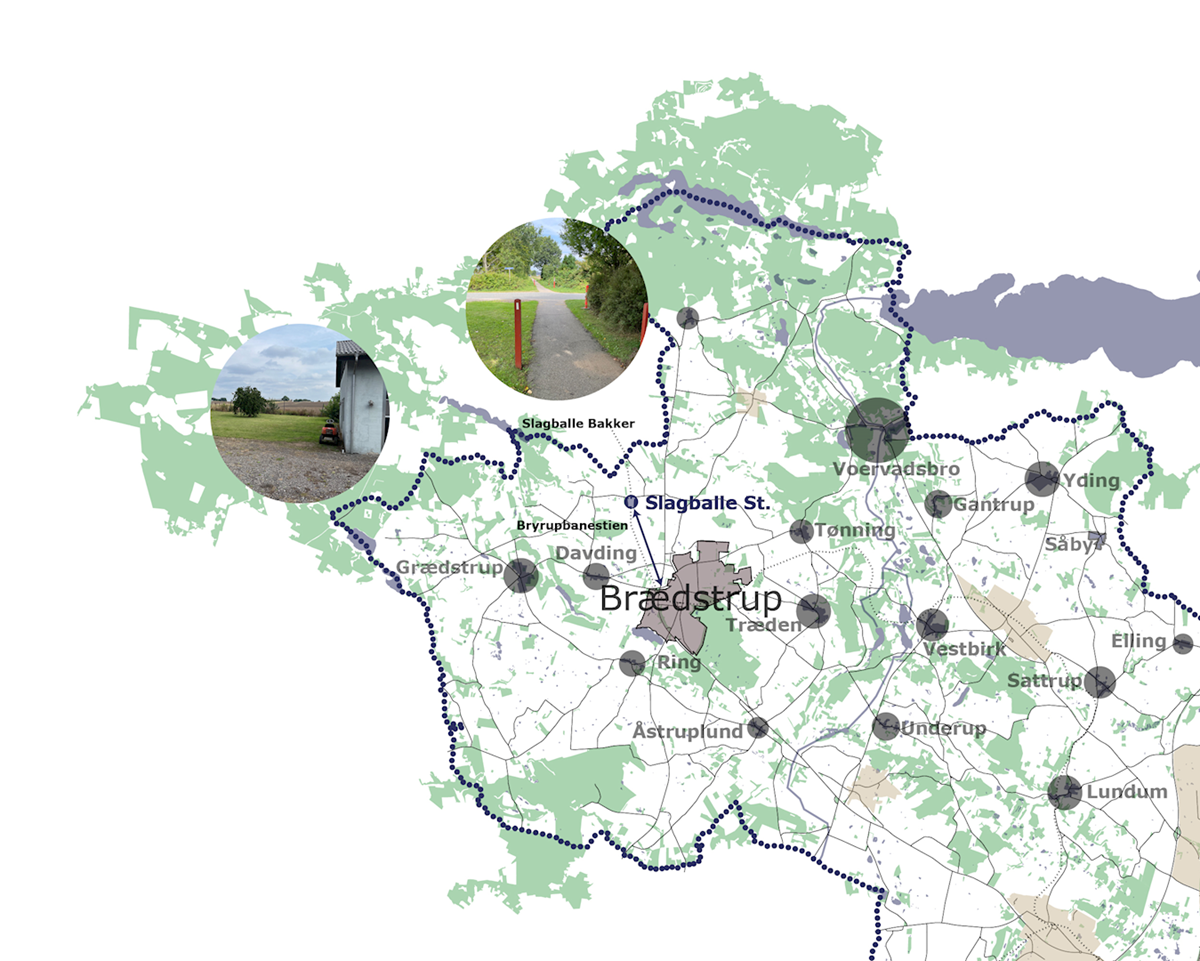 Landsbyer som skal tilpasses er karakteriseret ved, at udviklingspotentialet er udfordret, og at der på baggrund af udviklingen i sidste planperiode ikke umiddelbart vurderes, at ske en stigning i indbyggertallet, som kan retfærdiggøre at landsbyen udvides yderligere. I Slagballe St. er udbuddet af byggemuligheder fortsat så stort, at det kan dække den forventede efterspørgsel i planperioden (2021-2033).