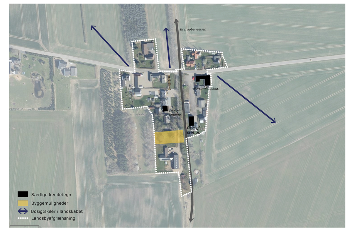 Udpegningerne er foretaget udelukkende for at give borgerne i landsbyen og evt. fremtidige bygherre, et overblik over potentielle fremtidsmuligheder. Det er altså ikke udtryk for, at kommunen kommer til at stå for evt. udvikling, byggerier eller indretning af fællesarealer. Udviklingen skal drives af private investorer, lokalråd, borgere eller fonde. Læs mere her, om hvad der kan søges støtte til i kommunen.