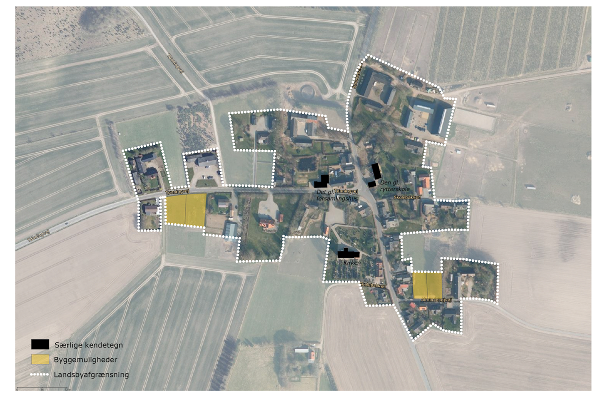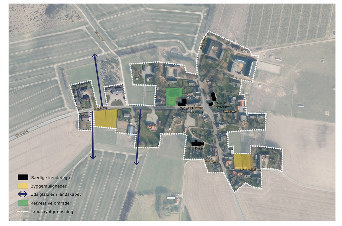 Udpegningerne er foretaget udelukkende for at give borgerne i landsbyen og evt. fremtidige bygherre, et overblik over potentielle fremtidsmuligheder. Det er altså ikke udtryk for, at kommunen kommer til at stå for evt. udvikling, byggerier eller indretning af fællesarealer. Udviklingen skal drives af private investorer, lokalråd, borgere eller fonde. Læs mere her, om hvad der kan søges støtte til i kommunen.