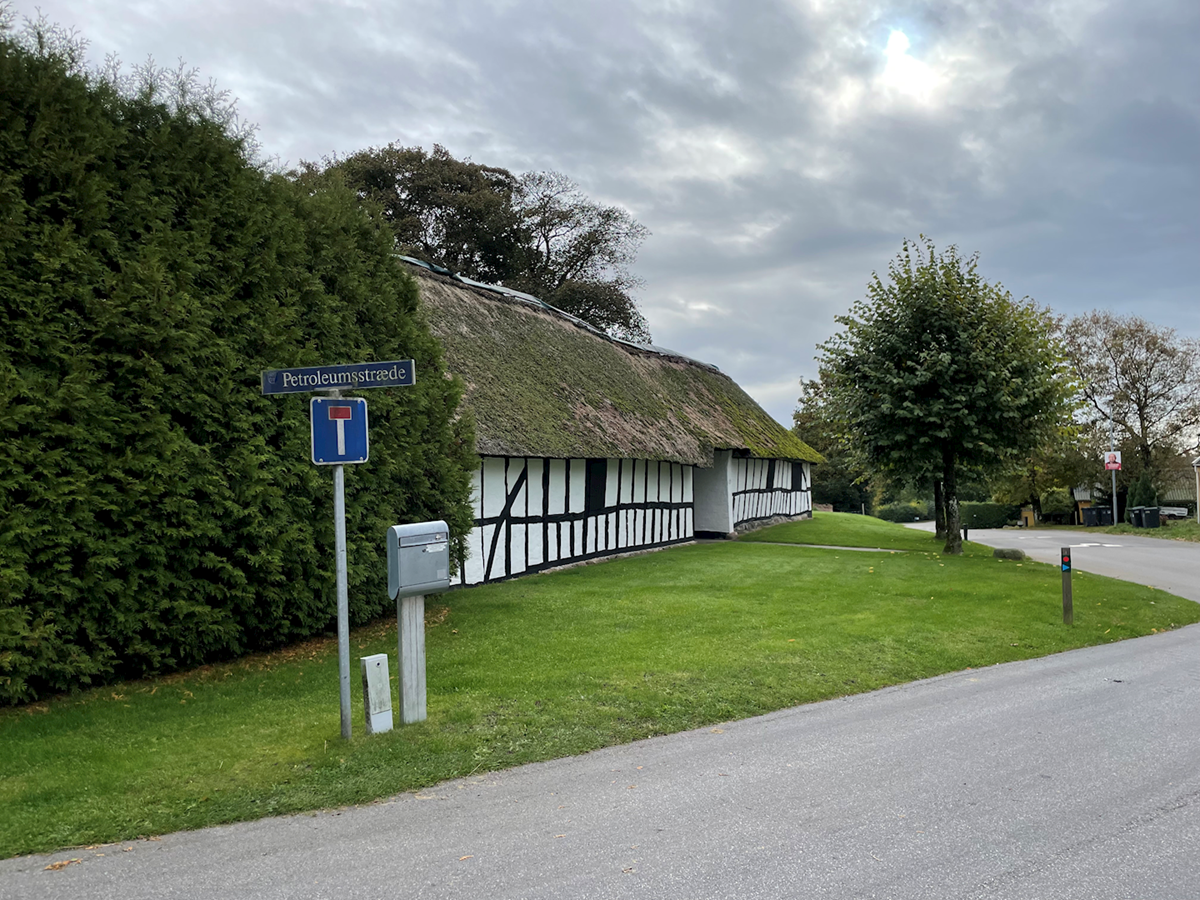 Billedet viser petroleumsstræde i Træden, som fortsat er grusbelagt.