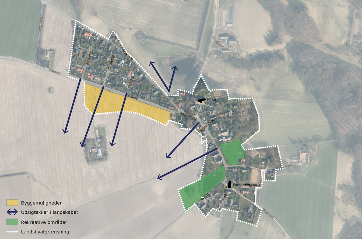 Det vurderes derfor, at landsbyens omfang og aktuelle byggemuligheder indenfor allerede eksisterende afgrænsning kan dækket det fremtidige behov i næste planperiode (2021-2033).