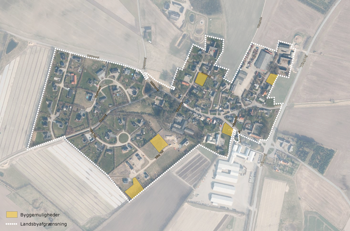 Udpegningerne er foretaget udelukkende for at give borgerne i landsbyen og evt. fremtidige bygherre, et overblik over potentielle fremtidsmuligheder. Det er altså ikke udtryk for, at kommunen kommer til at stå for evt. udvikling, byggerier eller indretning af fællesarealer. Udviklingen skal drives af private investorer, lokalråd, borgere eller fonde. Læs mere her, om hvad der kan søges støtte til i kommunen.