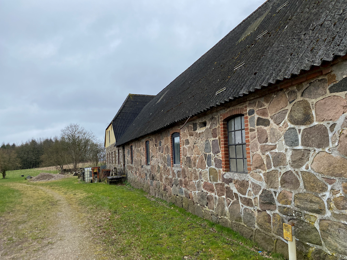 Billedet viser en ældre kampestenslænge i Yding.