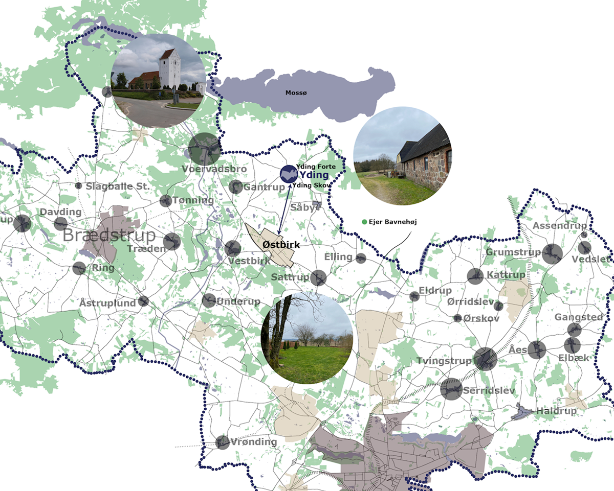 Der er udpeget to rekreative områder i Yding, som i fremtiden kan understøtte lokalsamfundet ved indretning til fælles formål. - Byggemuligheder