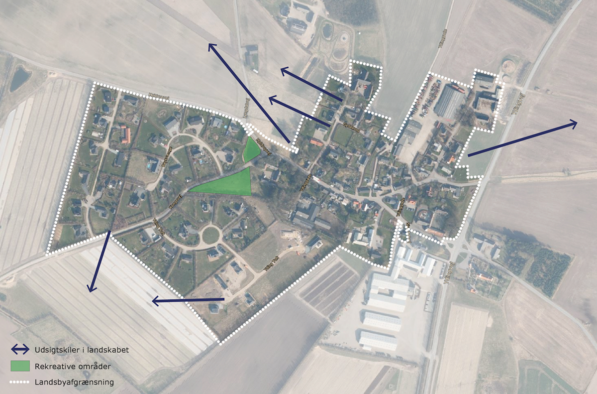 Der udpeges udsigtskiler i den vest- og østlige del af landsbyen, der skal bidrage til at bevare den særlige forbindelse til den omkringliggende natur. - Rekreative områder