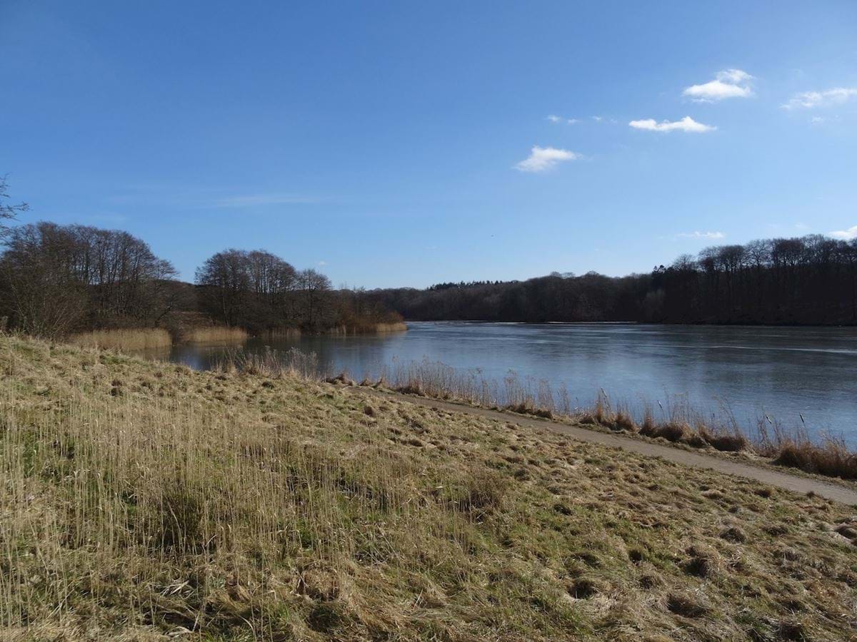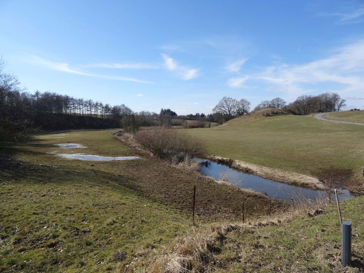 Øst for motorvejen er dalen domineret af skov, men på den nordlige dalside strækker dyrkede marker sig ned over dalsidens skrånende terræn.