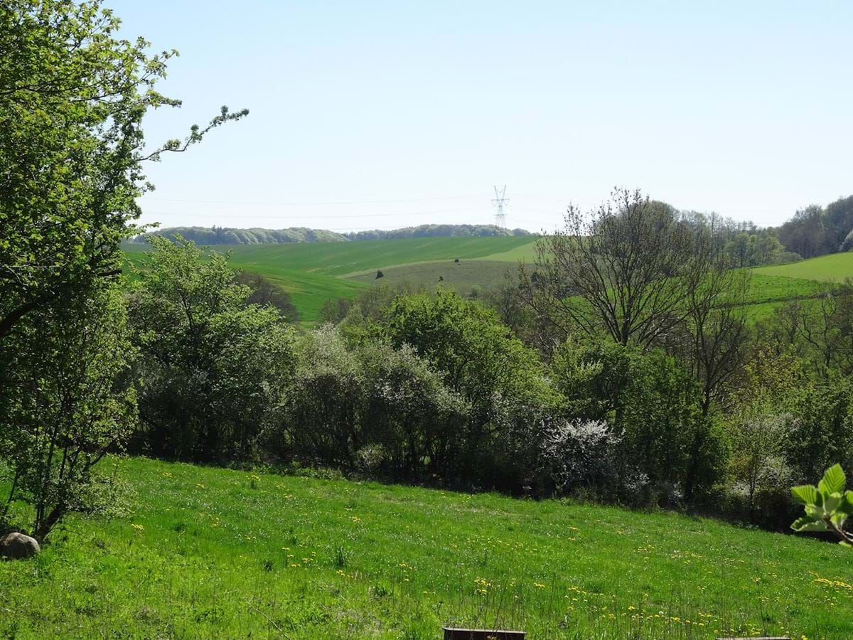 Uden for landsbyerne ligger de udflyttede gårde spredt, men højt i terrænet mellem dalene.