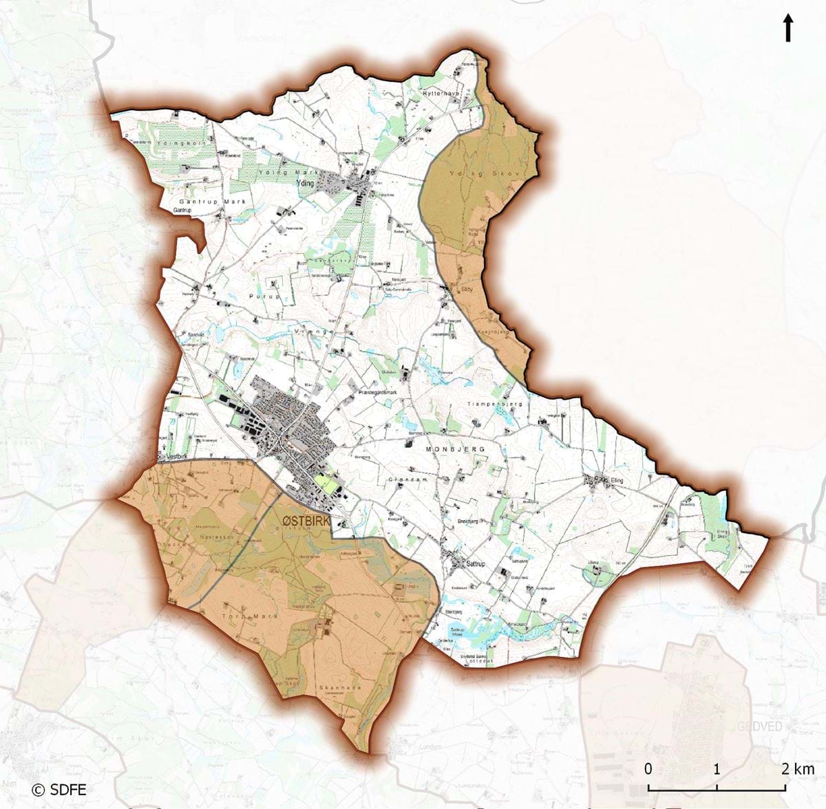 Delområderne er markeret med orange på kortet og beskrevet under tilhørene faneblad.