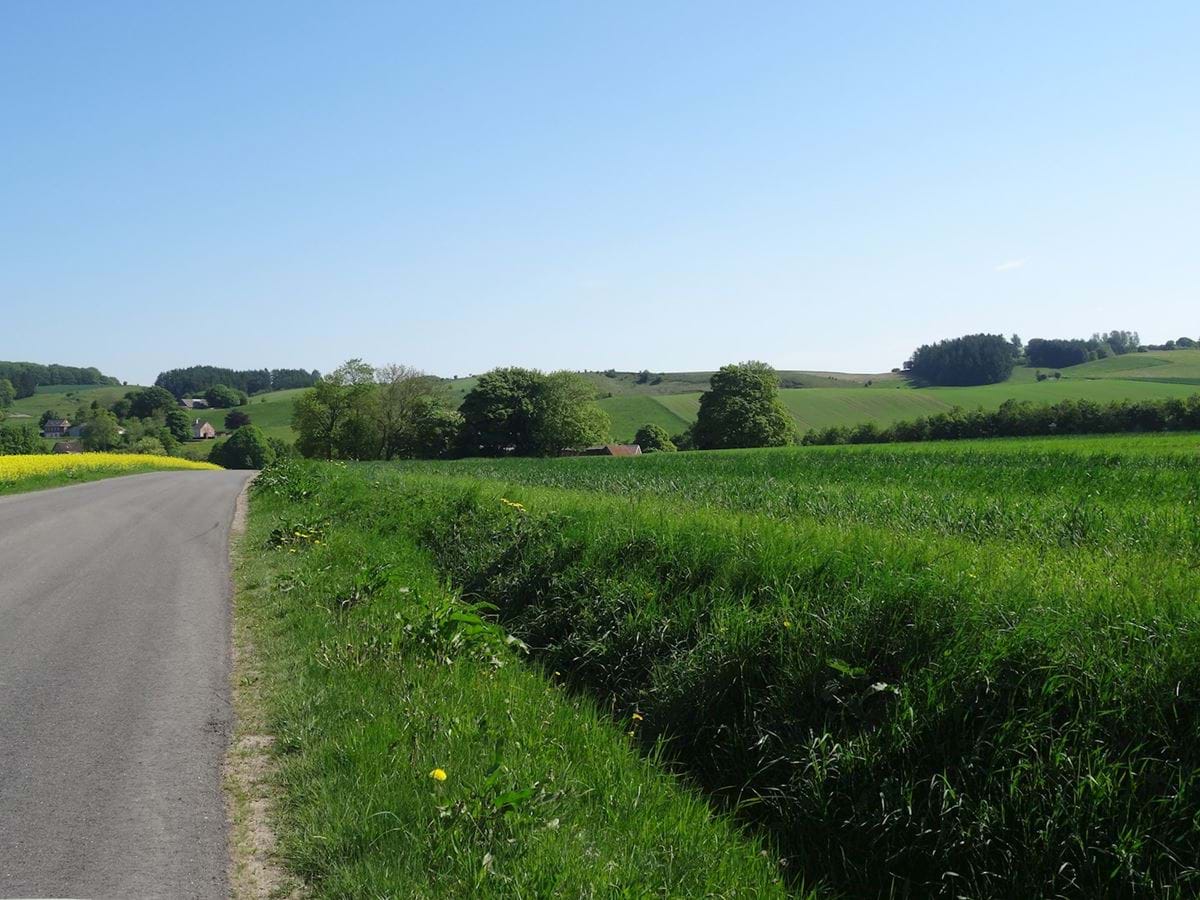 Syd for skoven er landskabet i modsætning hertil præget af en lille skala, der bl.a. er afspejlet i den lille landsby Såby og den endnu mindre bebyggelse Kvejnbjerg. Begge steder ligger bebyggelsen indpasset i det kuperede terræn og ofte beliggende i terrænlavninger.