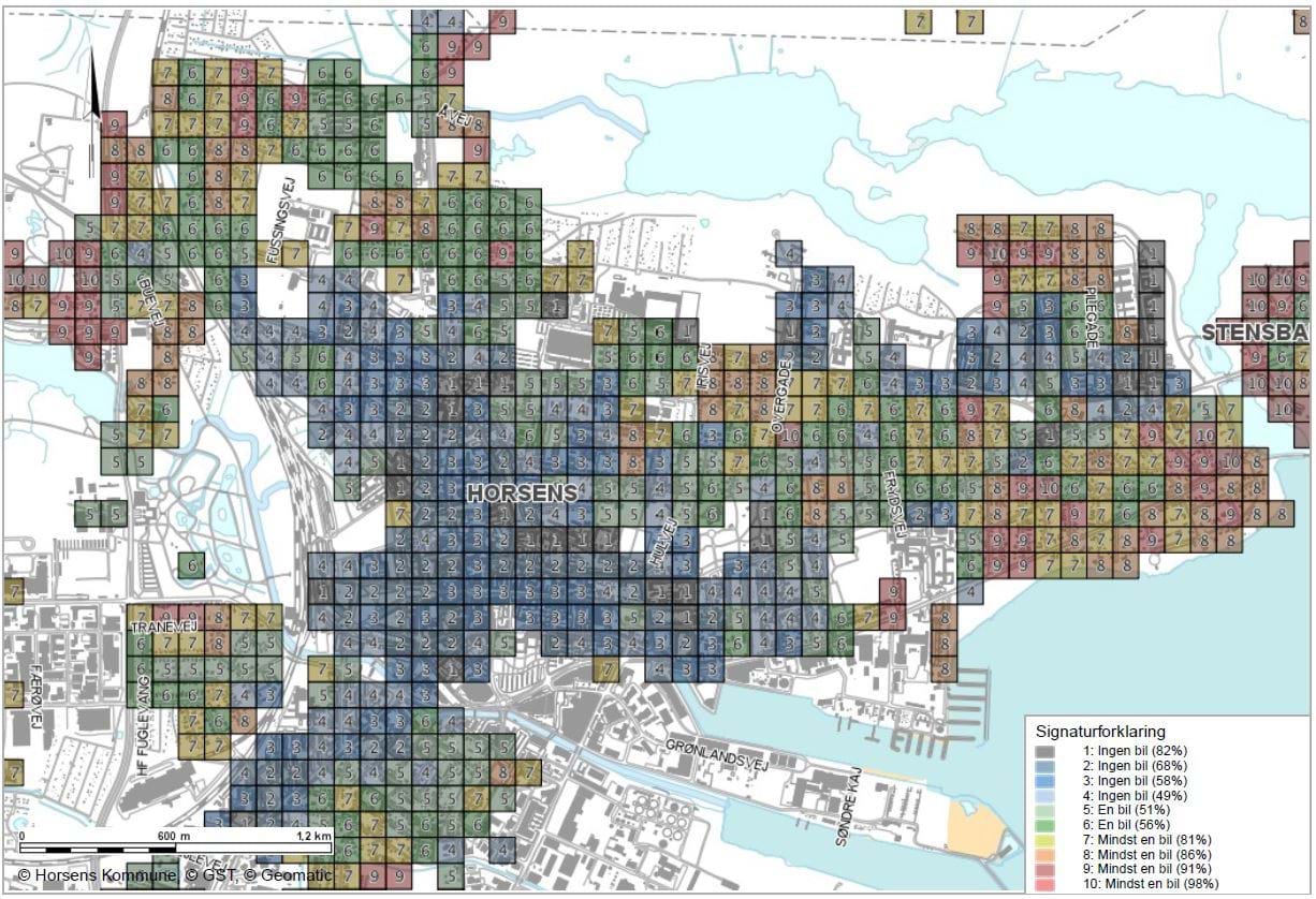 Figur 15. Kortet viser bilejerskabet i Horsens midtby.