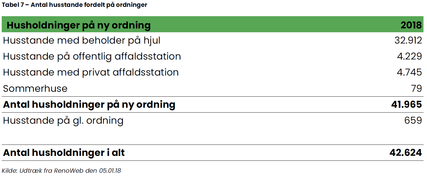 Tabel 7 viser antal af husholdninger tilmeldt de forskellige beholdertyper.
