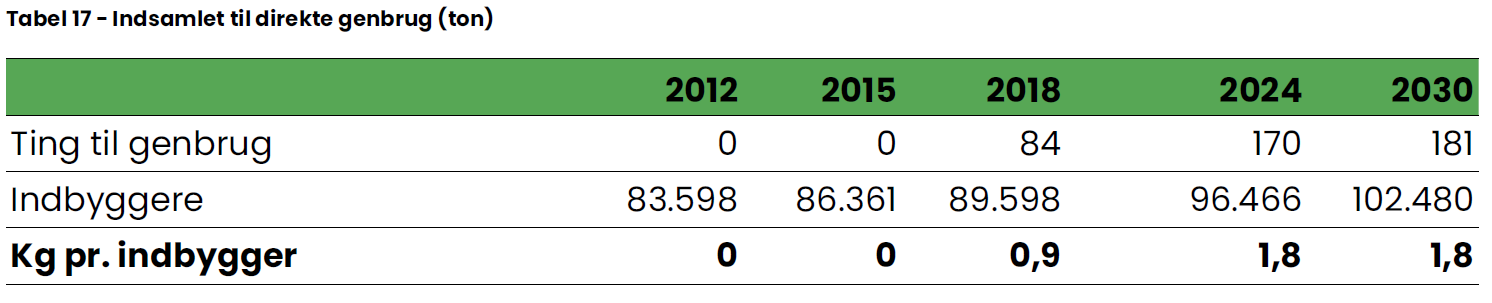 Vi vurderer, at der behov for at gøre det lettere at aflevere ting til direkte genbrug på alle vores genbrugspladser.