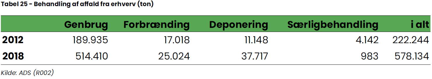 I 2010 blev der oprettet et nationalt Affaldsdatabasesystem med det formål at samle alle oplysninger om affaldsmængderne et sted. Siden 2010 har kommunerne ikke haft ansvaret for at anvise og planlægge det kildesorterede erhvervsaffald til materialeudnyttelse, hvorfor der ikke i kommunen findes bedre samlede data end de udtræk, der kan foretages fra den nationale database.