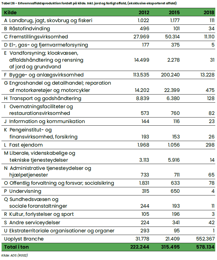 Totale affaldsmængder fra erhverv