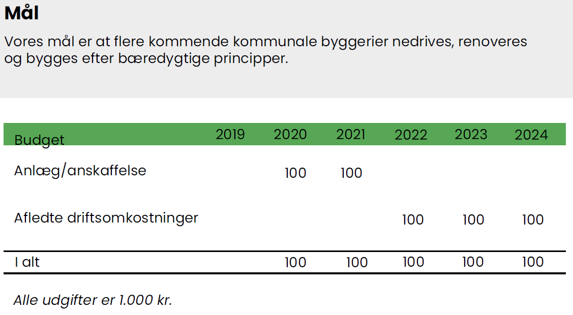 I forlængelse af byrådets målsætning om at Horsens Kommune skal være frontløberkommune inden for bæredygtighed, bør bæredygtigt byggeri tænkes ind ved nedrivning, nyopførelse, renovering og ombygning af kommunale ejendomme.