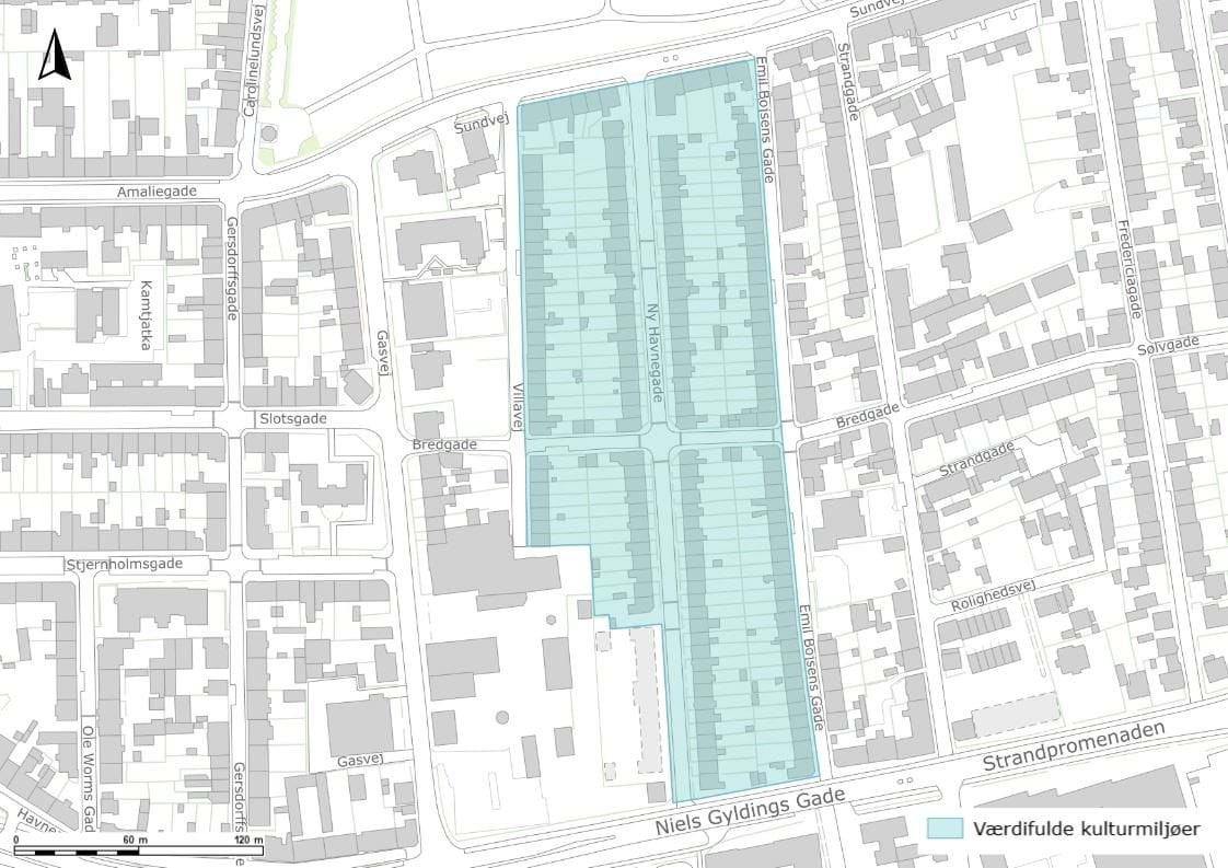 Kulturmiljøet i Ny Havnegade er en fortælling om et have- og byggeselskab, der på initiativ af redaktør Emil Boysen blev oprettet i 1886. Andelshaverne var industriarbejdere og håndværkere, der med inspiration efter de engelske havebyer byggede små pyntelige huse med forhaver. Mange af husene har endnu bevaret deres karakteristiske gavlkviste og individuelle murdetaljer.