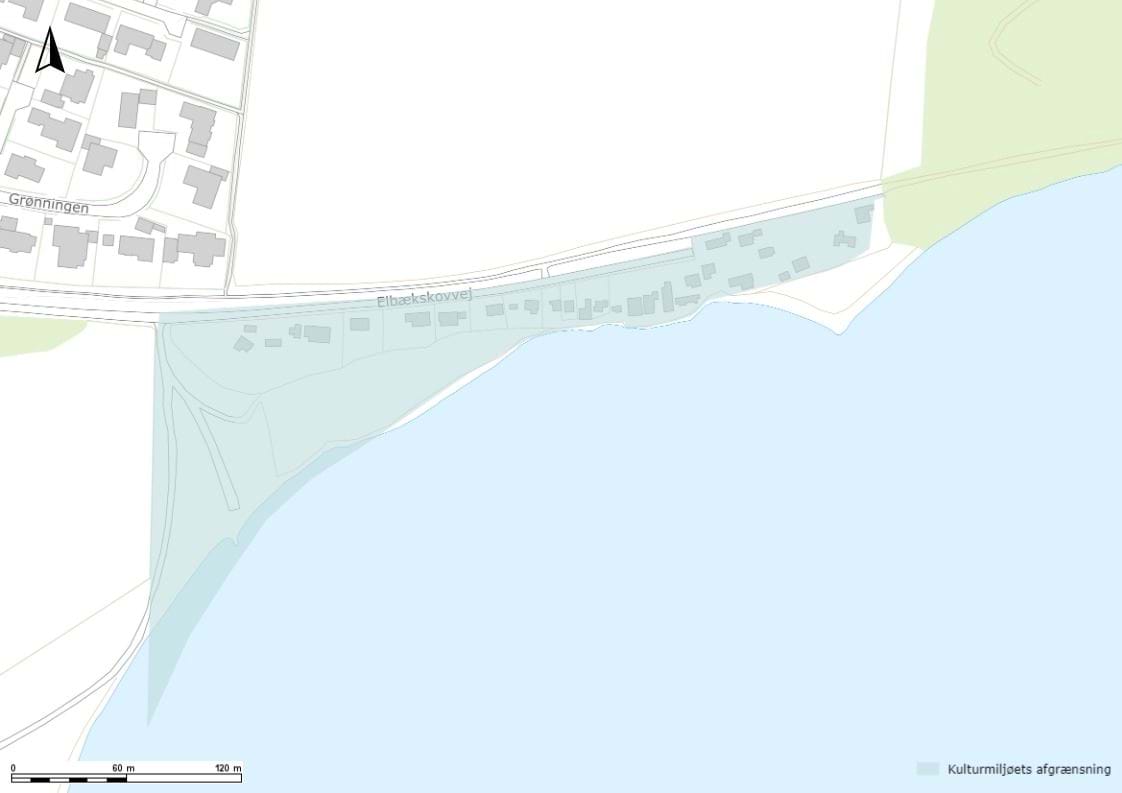 Kulturmiljøet er sårbart over for sløring af særlige kig fra Elbækskovvej over og mellem bygninger.