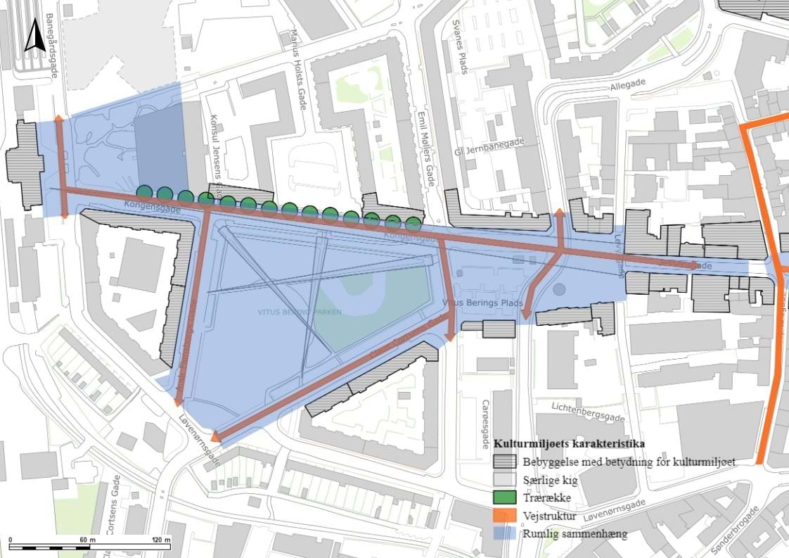 Kulturmiljøet er sårbart overfor ændringer i den rumlige sammenhæng - variationen af byrum og i arkitektur og skala i bebyggelse med betydning for kulturmiljøet.