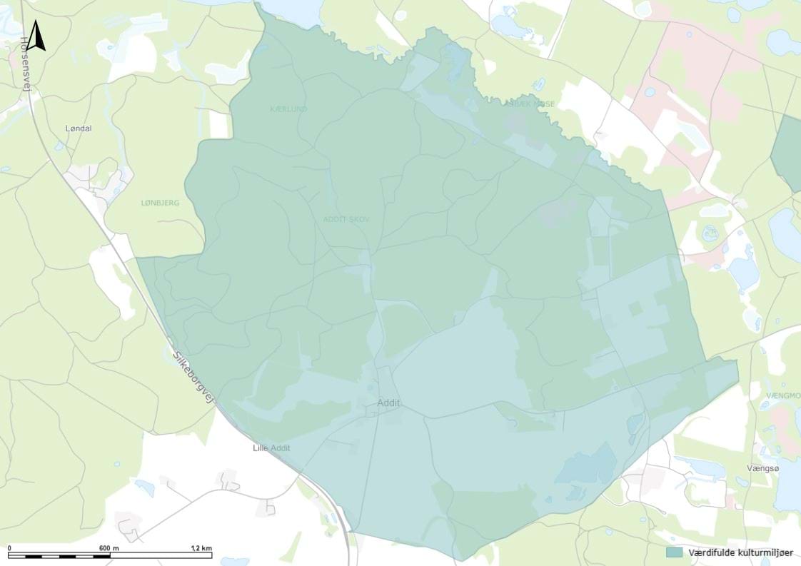 Addits beliggenhed i et åbent landskab med udkig til Mossø, gravhøje og skov er sårbar overfor ændringer og tilsløringer.